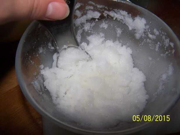 En este punto puede agregar más sal a tu propio gusto para hacerla más desmenuzable, que opté por añadir 3 cucharadas más de sal a la mina como quisiera más de una textura rugosa en vez de una pasta.