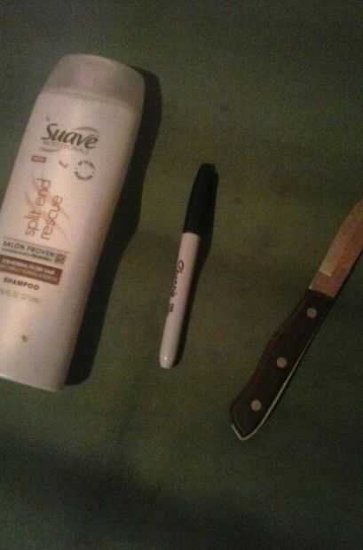 Usted necesitará una botella vacía de Champú/acondicionador, un rotulador y un cuchillo