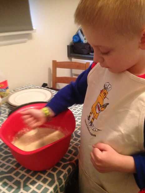 Terminé usando dos cajas para la torta entera. Una capa era francés vainilla, una capa era chocolate, y el tercero era una mitad y la mitad de ambos cuadros. Hizo para un agradable efecto de capas.