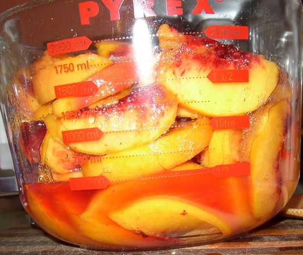 Pelar frutas deslizando pieles de melocotón. Puesto que han blanqueado los en agua hirviendo, esta es una tarea muy fácil. Cortar la fruta por la mitad y retire el hoyo. Luego cortar cada mitad en medias lunas. Retire cualquier contusión con un cuchillo de cocina. Coloque rebanadas de duraznos en un recipiente de medición grande. Se necesita aproximadamente 4 tazas para esta receta. Añadir 1/2 taza de azúcar y 1 cucharadita de fresco jugo de limón. Las marcas de azúcar zumos naturales salen de la fruta que da el zapatero es jugosidad. El limón evita el melocotón dorado y da el fruto dulce de una tarta maravillosa, contrastando sabor.