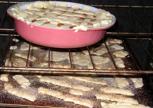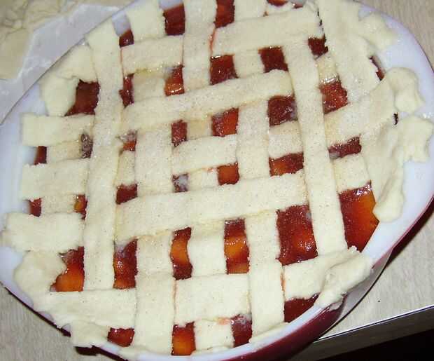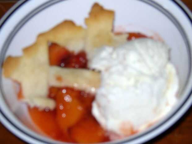 pastel para el día de Pi!Necesitaba hacer un pastel rápido antes de la clase, por lo que pude celebrar después.Ingredientes:1 tarta (las que vienen enrolladas dos a una caja)3 melocotones1 1/2 tazas de arándanos congelados3/4 taza de helado de frambu