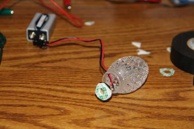 Introduzca un nuevo gizmo tentativamente llamado a "Ladrón de luz de GE". Como se muestra en las fotos adjuntas, hay mucho espacio dentro de los bulbos para montar un LED blanco célula fotoeléctrica activada. Las bombillas están diseñadas con agujeros preparados para acceso de cables, y es fácil de montar una batería de 9V en la parte posterior de la Junta. El "ladrón de luz" permite la estrella blanca para descolorarse y aclarar en concierto con las bandejitas.