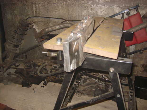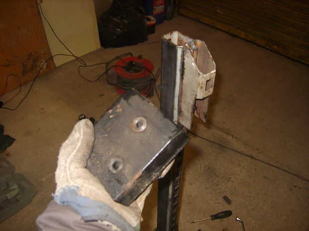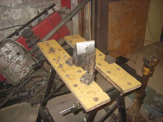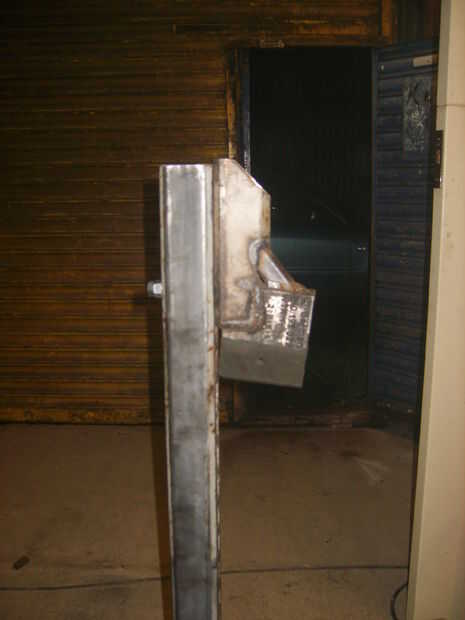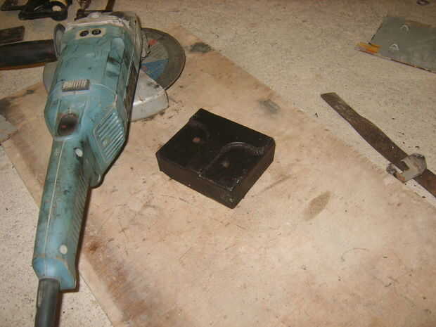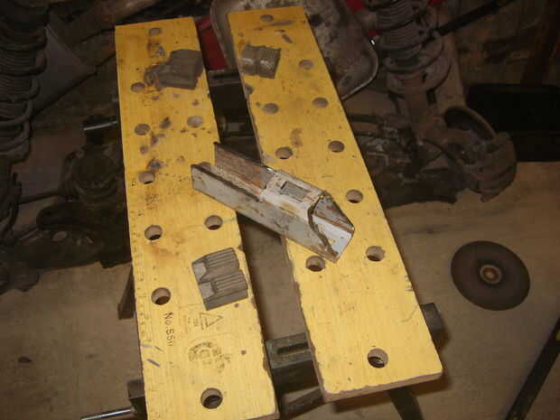Para dividir un registro, debe ser forzado en forma de cuña afilada. Considerar elaborar una cuña de espesor placa, pero luego me di cuenta de una pieza ideal del material en la suspensión delantera del MK3 VW Golf desechado hace tiempo. Después de un poco de soldadura, corte y pulido, surgió una cuña gruesa.
