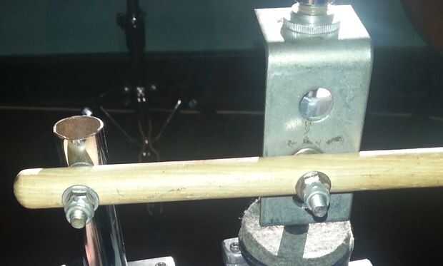 • Perno el extremo del palo al poste con el perno de cabeza de taza, utilizando una arandela de cada lado del palo. Apriete el perno como el giro libre de la baqueta se permite luego bloquearla con el tornillo de la marca ' nyloc '.