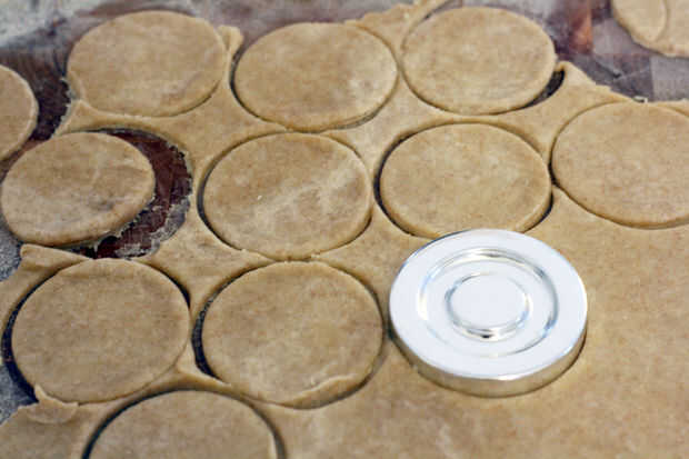 Cortar con un cortador de círculo o algo similar - utiliza la tapa de un frasco pequeño.