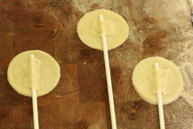 Utilizando el extremo de un palo de piruleta o un tenedor, aplaste los bordes.