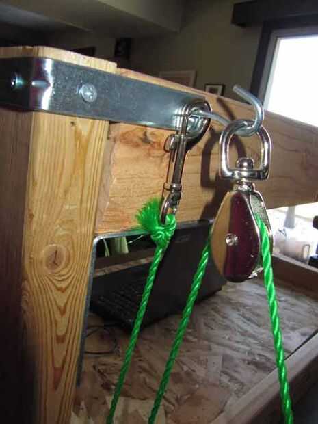 5. Hilo de rosca o alimentar el resto de la cuerda hacia arriba y a través de la polea superior y luego hacia abajo.