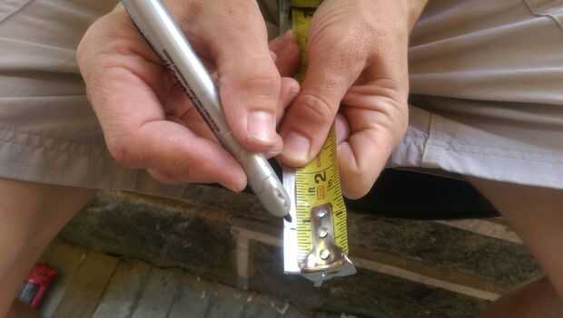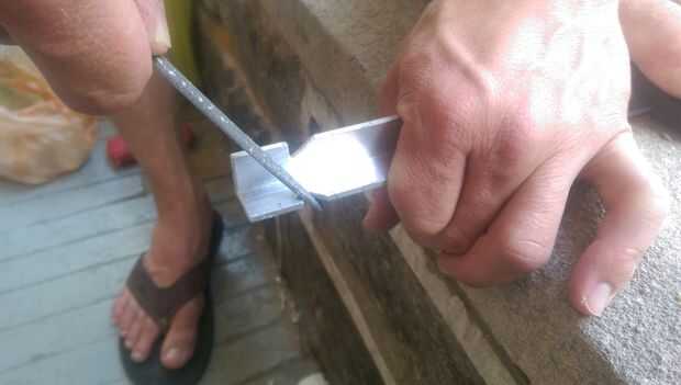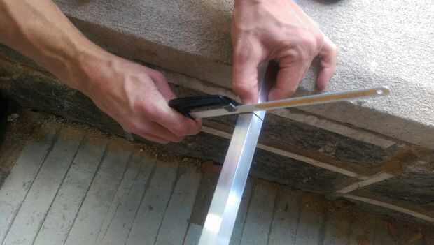 1. Mida y marque el ángulo de aluminio en cuatro secciones de pies 1. Sugerimos colocar el ángulo de aluminio con la punta hacia arriba para cortar con mayor facilidad.