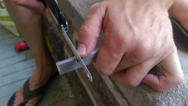 4. con la sierra para metales, corte las muescas en la parte superior de cada juego.