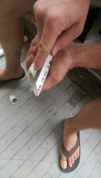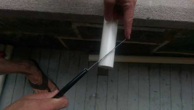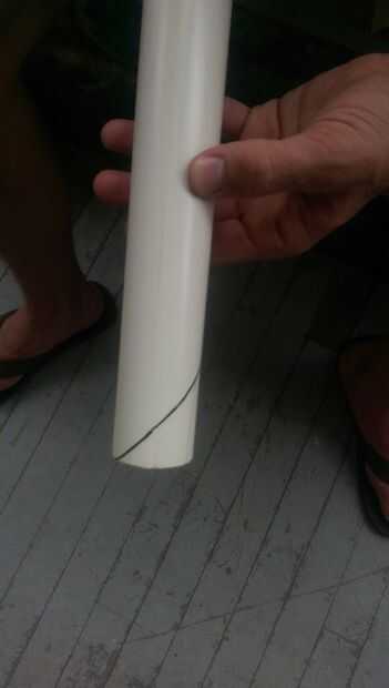 5. comenzando en el borde de la pipa, alinee la hoja de sierra con la marca indicada y atravesar al otro lado de la tubería. Nota: no sigas la línea completamente alrededor del tubo.
