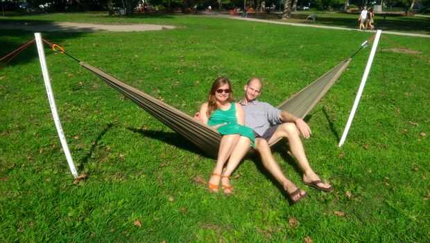 Este sistema puede soportar dos personas (hasta cerca de 300 libras) mientras su hamaca es lo suficientemente fuerte para hacer lo mismo.