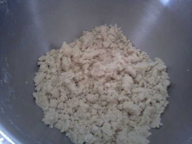 Mezclar la harina, manteca y la mantequilla en una batidora o a mano hasta pedacitos de tamaño guisante desmenuzable
