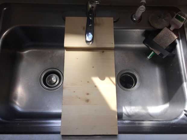 Medidas para asegurarse de que la madera empujó contra mi grifo del fregadero, pero también era no demasiado largos en cuanto a smoosh mi gnards al afilar.