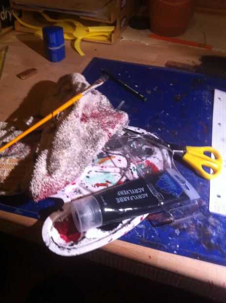 usé una vieja espuma de poliestireno más fresco, 2 cráneos de espuma de poliestireno de Michael, un medallón de madera sol (también de Michael), cosas grandes, ampliar la espuma, pintura de piedra blanca y negra spraypaint. Había pegado los cráneos c