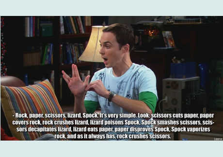 La verdad no tengo idea por qué esta idea vino a mi cabeza pero he visto un gráfico de Sheldon de Big bang theory explicando el juego (no la versión que he publicado aquí que vi era en color pero he perdido el libro de la cara y repente pensaba HMM esto podría hacer un juego de cartas