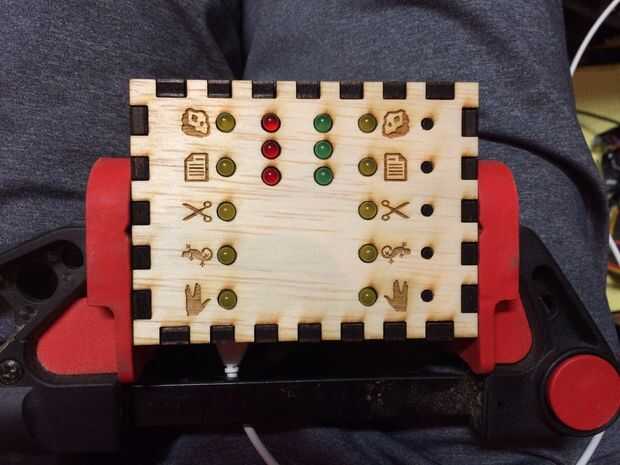 He añadido una columna pequeña de madera que presiona en detrás de la placa de botón para sujetar firmemente en su lugar. Usted puede optar por hacer lo mismo con la PCB pero encontré ajuste apretado lo suficiente que yo no necesitaba.