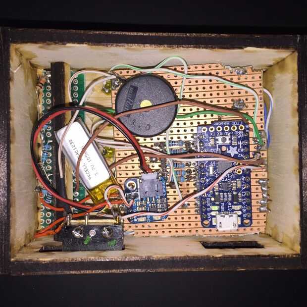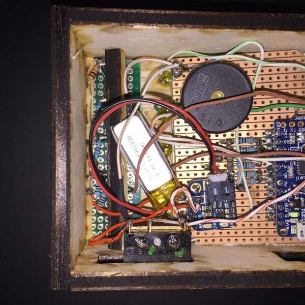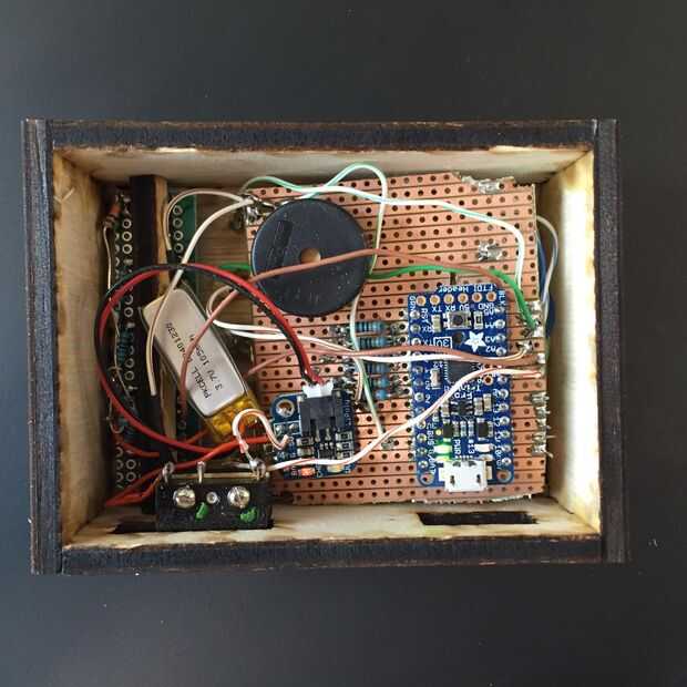 Simple cosas aquí. Utilice pegamento de carpintero, pero no use demasiado. Abrazadera o banda de goma la caja en unos pocos lugares. Después de la fijación con abrazadera Limpie cualquier exceso de pegamento con un trapo húmedo. Deje las pinzas durante 30 minutos o menos luego es seguro manejar suavemente. Espere 24 horas antes de ponen cualquier tensión real en la caja. Seguir adelante y añadir la batería y conectarlo a un cargador USB por lo que puede cargar durante la noche mientras esperas que el pegamento se seque.