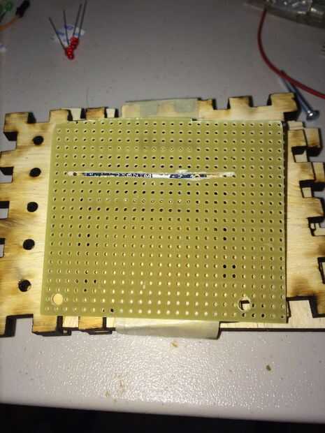 Corte la tabla de la tira hasta el tamaño para caber en la caja mientras todavía me da el máximo PCB bienes raíces para trabajar con. No hay mediciones directas, solo globo ocularlo! Será necesario determinar donde colocarás el Pro-Abalorio en el tablero y cortar las tiras entre las clavijas, de lo contrario tendrás montones de cortos circuitos. Usé una rueda de corte en mi dremel para quemar a través de la PCB completo + trazas en cuestión de segundos.