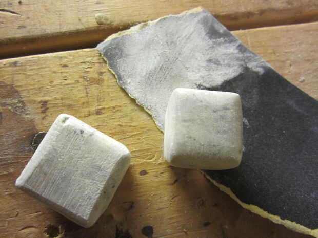 Piedra natural viene en dos diferentes calidades: artista y construcción. La piedra artista es más suave y más frágiles, mientras que construcción esteatita se utiliza para las encimeras y es un poco más duradera. Tenía piedra natural grado de artsit por lo que pude hacer mi forma con papel de lija. Si usted encuentra que tiene grado de construcción que necesite archivos y una lijadora para ayudar en la conformación de lo.
