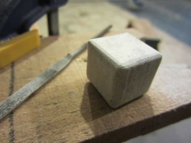 -Primero había establecido el papel de lija sobre la mesa de trabajo (400grit) y lija en cada cara del cubo hasta que todas las marcas de corte eran lisas.