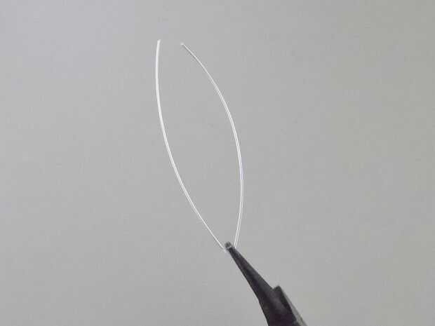 Coge un trozo de alambre con la media de sus alicates de punta. Doblar ambos lados del cable hacia arriba.