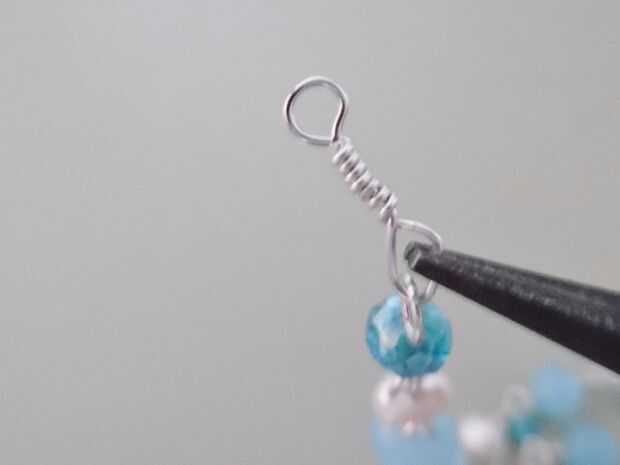 Envuelva el extremo del alambre hacia abajo y alrededor igual que antes. Recorte el exceso de alambre y aplanar y suavizar con los alicates doblados de la nariz.
