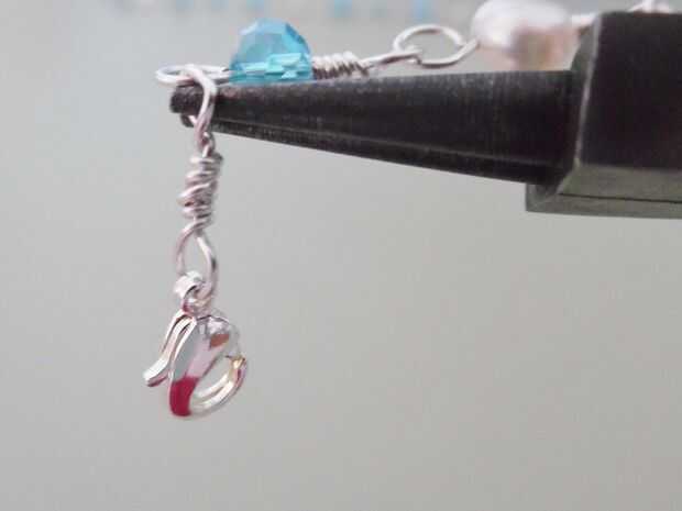 Repetir el mismo proceso para el otro lado del collar con el segundo pedazo de cable, asegurándose de que se deslice el corchete de la langosta en el ojo esta vez antes de alambre de embalaje cerrado.