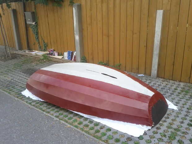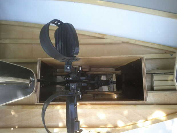 Tornillo de una tira de madera sobre la tela a través de las escoras. Puede ser cualquier tamaño. La mía es sólo 6 mm. Atornille con tornillos de acero inoxidable. Son baratos si usted los compra perder y moho no se ve bien en el barco. Anteriormente usé tornillos que donde sólo latón cubierto... la cabeza donde la broca rayados les comenzó a aherrumbrar después de algún tiempo fuera.