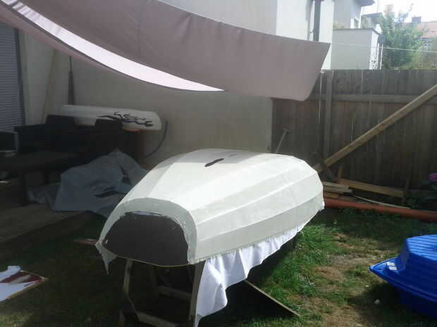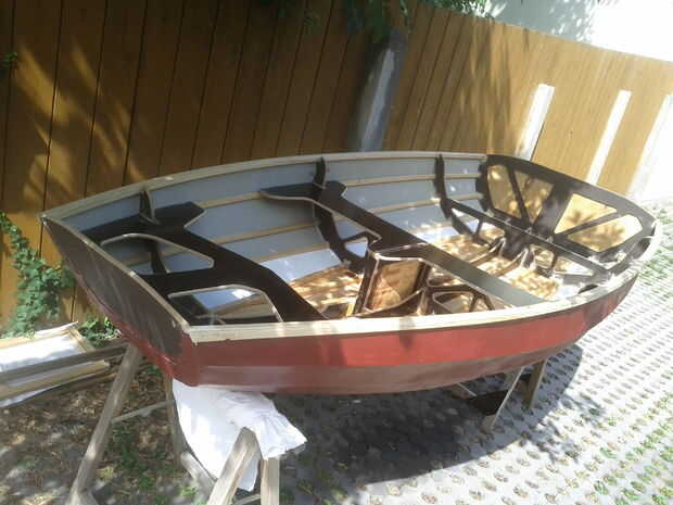 Usé pintura cara de PE en la silla de paseo. Es apestoso e innecesaria. La pequeña canoa fue pintada con acrílico a base de agua barata... esto es lo que uso ahora en todos los barcos de mi SOF.
