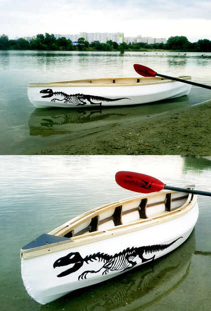 Trate de materiales baratos. He probado el acrílico a base de agua barata en mis hijos canoa pequeña (que realmente fue construido en 2 días) y resultó perfecto + es fácil de dibujar en él con un marcador permanente. El acrílico tiene ahora lastet 2 veranos y es todavía hacer el bien.