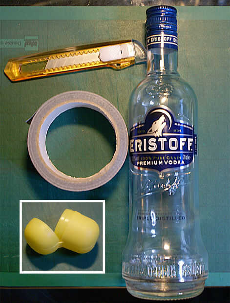 Una botella: Forma y tamaño son hasta pero serás consciente de bombeos y pinches podrían evitar que la manga se eliminan. Más botella de Smirnoff por ejemplo no sería conveniente pues tienen pizca cerca de la base y ampliar como el ir para arriba, esto impedirá la manga se deslice y. La botella de Eristoff que estoy usando tiene un poco cerca de la base por debajo de la protuberancia, sin embargo cerca a la parte inferior que puedo dejar una falda suelta a permitir la acogedora a eliminarse.Cinta de conducto/celo: Utilizar cualquier color que te gusta, utiliza gris, pero habría utilizado ya sea rojo, verde o naranja, había más ampliamente disponibles en el Reino Unido. Nota: Va a utilizar un montón de cinta, el rollo que se muestra no estaba lleno pero que cubre este 70cl botella usa toda la cinta que se muestra y pequeña cantidad de otro rollo.