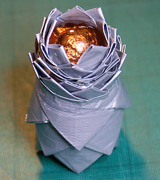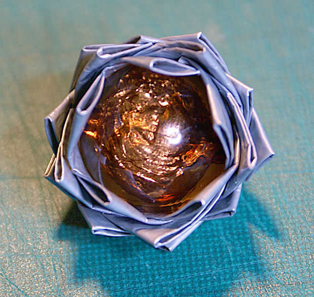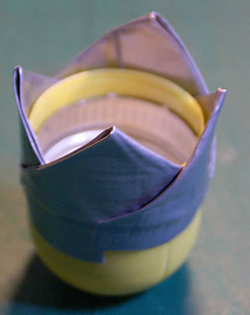 Usando tu anillo de escamas pequeñas, la parte superior de la tapa dos veces, pero con las escamas hacia arriba, debería verse como una corona.