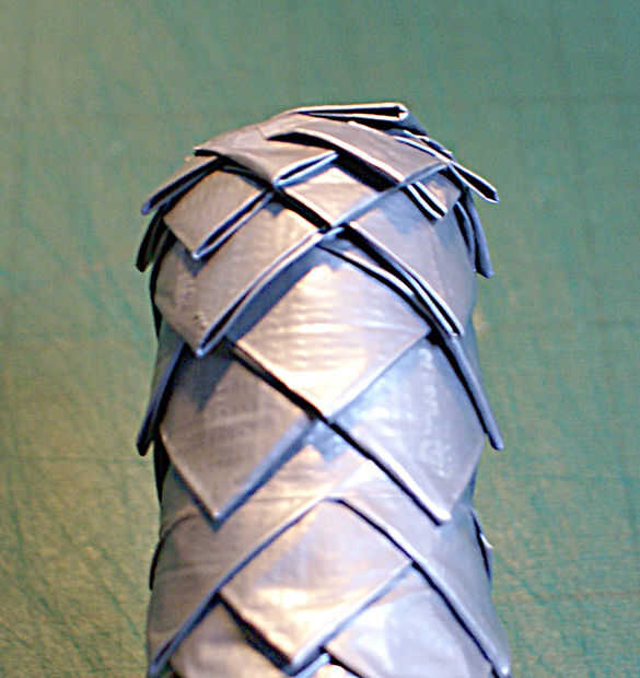 Añadir más filas de escamas que cubren la mayor parte de la tapa de la manga, dejando sobre un cuarto de pulgada en la parte superior descubierta.