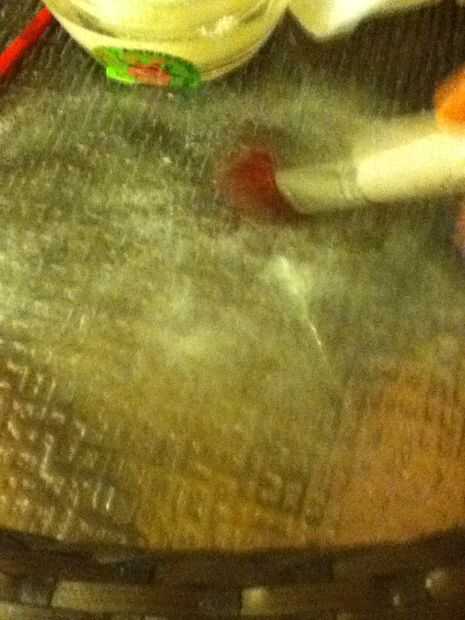 esto es un gran efecto que puede parecer un poco de carne que se decaía. Hace una base ideal para un disfraz de zombie.El brillo no será muy evidente, mi flash de la cámara lo hace todo aspecto brillante.Materiales:* Látex líquido* Pintura naranja/am