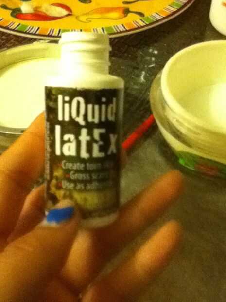 esto es un gran efecto que puede parecer un poco de carne que se decaía. Hace una base ideal para un disfraz de zombie.El brillo no será muy evidente, mi flash de la cámara lo hace todo aspecto brillante.Materiales:* Látex líquido* Pintura naranja/am