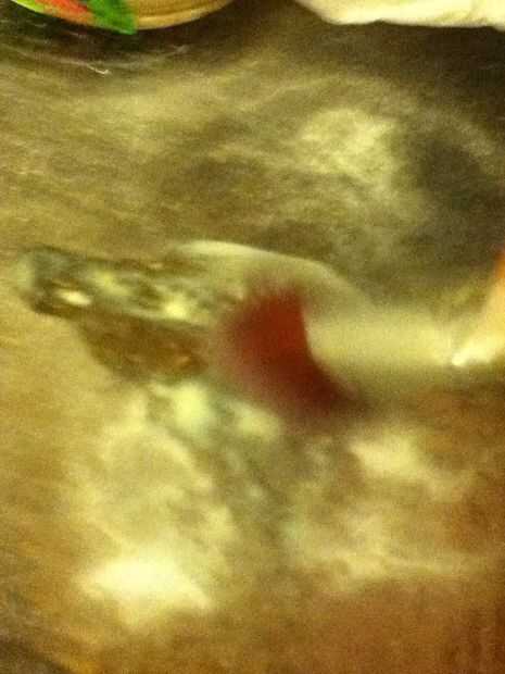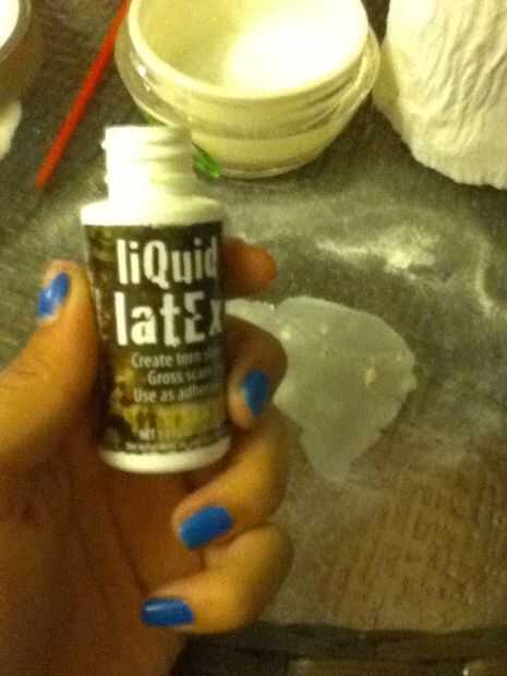 esto es un gran efecto que puede parecer un poco de carne que se decaía. Hace una base ideal para un disfraz de zombie.El brillo no será muy evidente, mi flash de la cámara lo hace todo aspecto brillante.Materiales:* Látex líquido* Pintura naranja/am