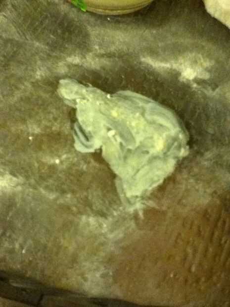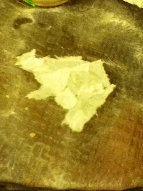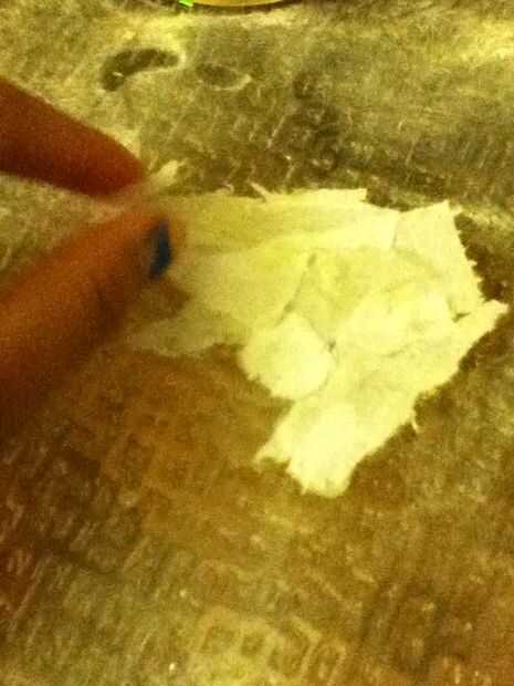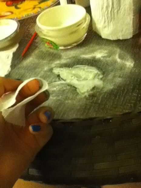 Después de su látex seca en polvo con un polvo ligero de polvo y poner una segunda capa de látex después de desarmar el papel de higiénico 2 capas y colocando encima el látex cuando todavía mojado