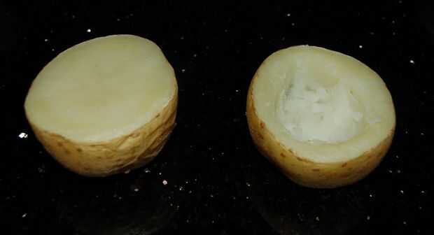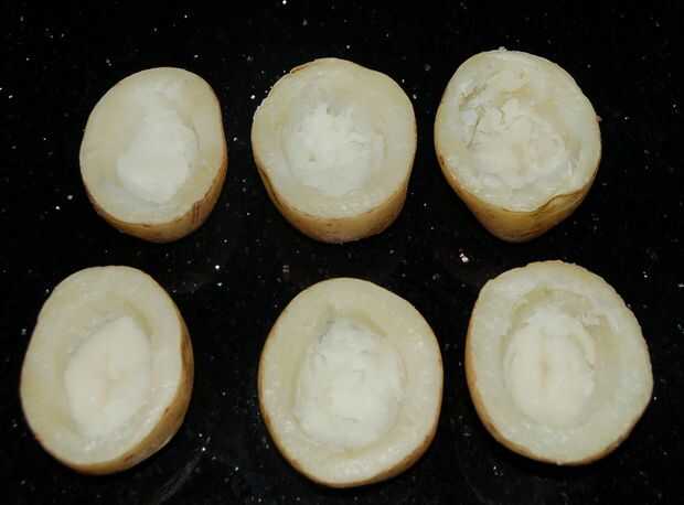 5. Cuando esté fría suficiente para manejar la cuchara centro (excepto para puré de papas o simplemente comerla como continuar la cocción)