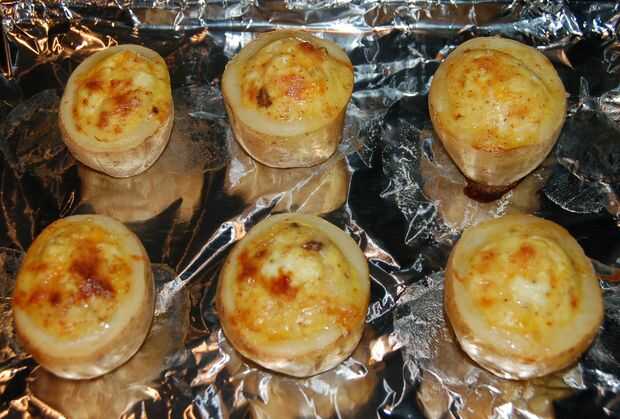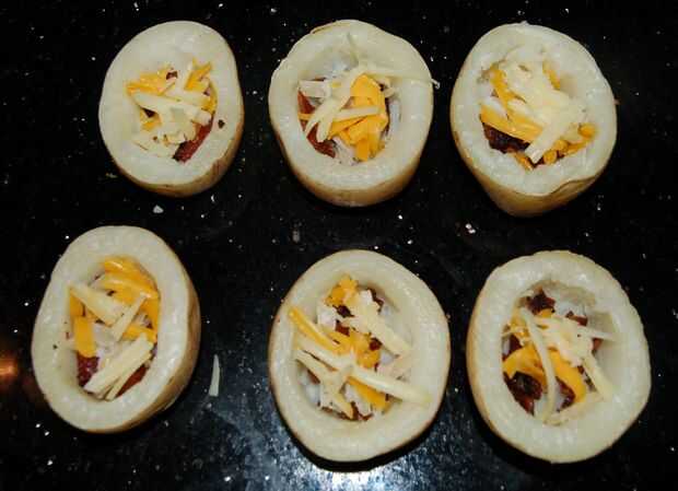 5. Mezcla de huevo de la cuchara en cáscaras de patata (tan completos como usted se atreve)