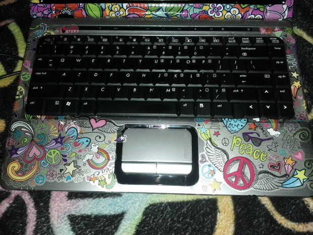Ahora la etiqueta de la laptop en mi superficie de teclado fue comprada en mi Walmart local (en la sección de portátiles en electrónica) para alrededor de $1 en el espacio!