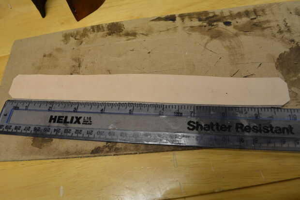 Corte una tira de 10 pulgadas, mina era cerca de 1 pulgada de ancho, que usted podría hacer más amplio, como un 1.5 pulgadas y todavía sería apropiados.