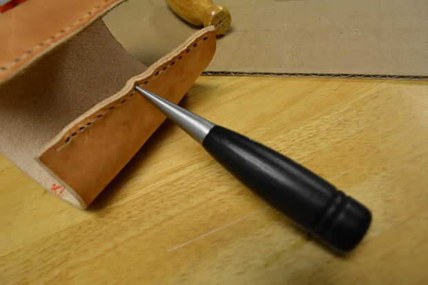 A continuación si usted tiene un punzón pulido, utilice que amplia y lisa los orificios, esto ayudará a reducir la fricción y permitir la costura ser más fácil después.
