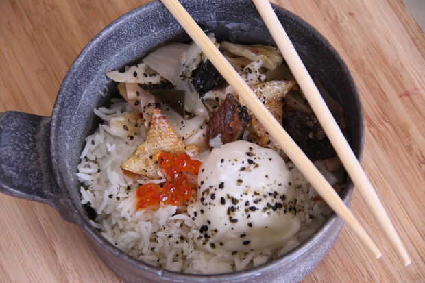esto es muy simple y una receta rápida comieron con salsa picantePaso 1: ingredientes:2 tazas de arroz de sushi.2-3 hojas de noriUn pedazo de piel de slamon (grado de sushi).AguacateTempura dePaso 2: Hacer el rolloLa siguiente receta es conveniente p