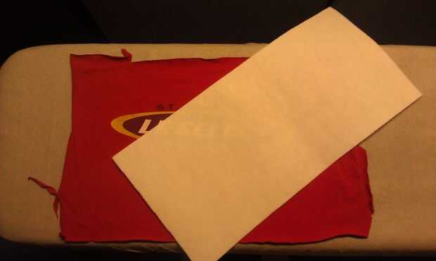 Diseño de un cuadrado que es 11 "X 17" en su camiseta y corte alrededor de la Plaza. Coloque la camisa encima de la entretela y la entretela en la parte trasera de su camisa. Siga las recomendaciones de MFG y utilice un paño para evitar que se pegue el diseño.