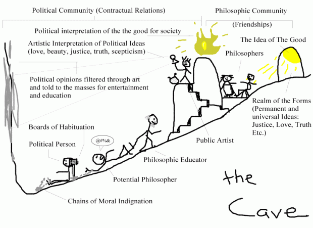 Los muertos no aburre y sigue leyendo... Encontrar la información (y la historia completa) acerca de la caverna de Platón @ http://www.age-of-the-sage.org/greek/philosopher/myth_allegory_cave_plato.html