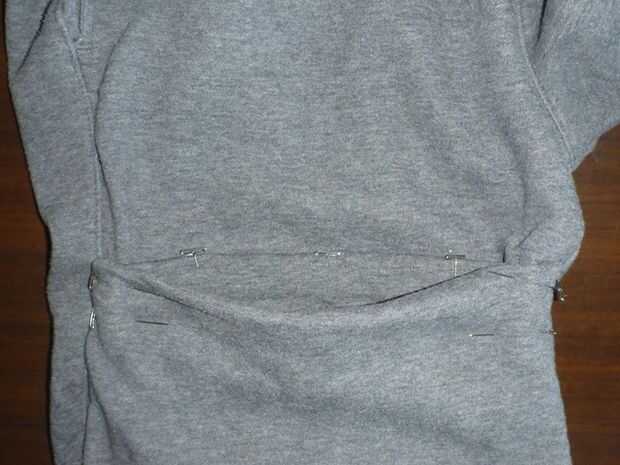Si la pierna original fue afilada, dividir el exceso y meta hacia las costuras laterales. Perno de la parte posterior de centro del bolsillo "boca" a través de la capa frontal de la pierna principal.