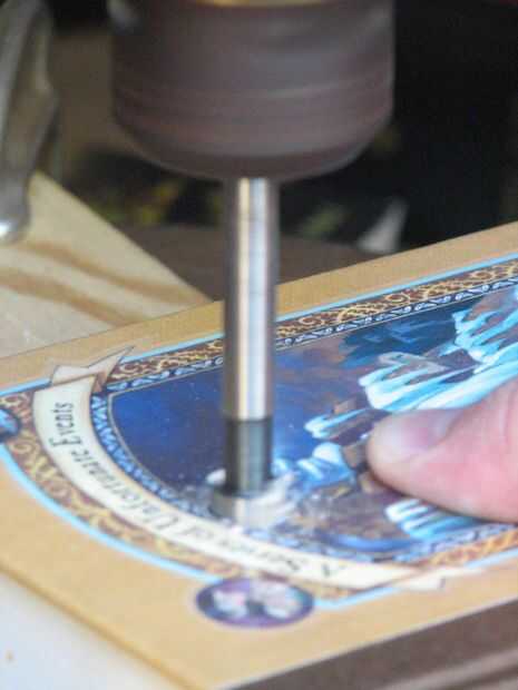 Experimentó con varias brocas diferentes y finalmente se estableció en el uso de la broca forstner. Uno de los grandes desafíos es que los residuos de la perforación no fácilmente volver hacia fuera el agujero, pero las cuñas en su lugar entre las páginas, aumentando el espesor del libro conforme taladra. Tenía bastante justo éxito sosteniendo firmemente el libro, pero fue aún más fácil después que alistó ayuda para sostener el libro hacia abajo firmemente. Yo también se retiró del corte con frecuencia que parecía ayudar a. También puede usar una pinza, pero con tantos libros, todos de diferentes espesores, sujeción era un poco demasiado esfuerzo para mí.