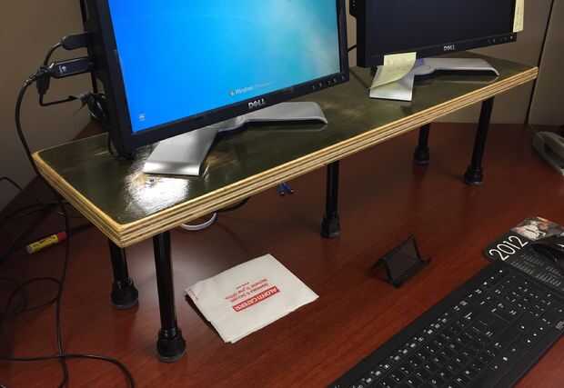En este punto, tras los pasos de acabado, es listo para utilizar. Utilicé tubería de 8 pulgadas de alto, y en retrospectiva creo que seis pulgadas de la pipa habría sido fino. Una de las cosas agradables de la rosca es que podría ajustar cada pata para que la tabla es firme y no se balancee. Aunque es relativamente poco profundo fondo es bastante robusto. En general estoy bastante contento.