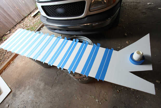 Utiliza cinta de pintor de 2" y de"ojos"otra vez el espacio entre las rayas blancas y negras. Queremos que sea similar pero realmente no tienes exacta. Si su TOC se prepara para medir mucho!