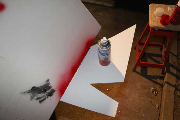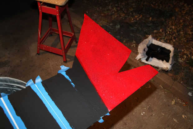 Una vez que la cinta se retira lentamente, utilicé un trozo de cartón para bloquear la pintura roja. Yo sólo estándar pintura en aerosol, pero elegí un lustre brillante, ya que deberían brillar.
